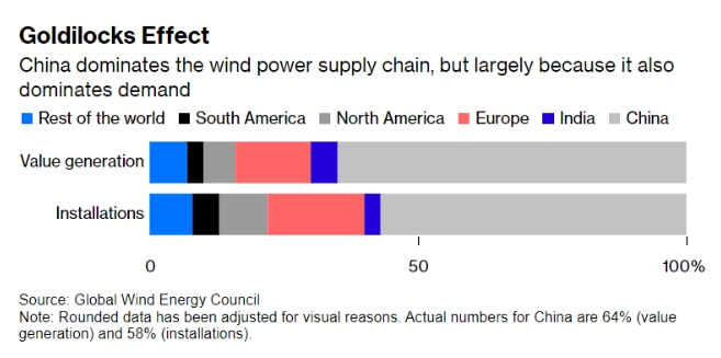 中国主导风力发电供应链主要因为该国也主导需求