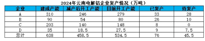 从2023年底持续到今年4月,云南又传出限电减产消息。有知情人士向能联社透露,从去年年底到今年一季度,云南电解铝厂各家企业开始压减负荷,综合折算下来理论减产产能180万吨左右,约占云南省电解铝指标产能29%,接近三成。