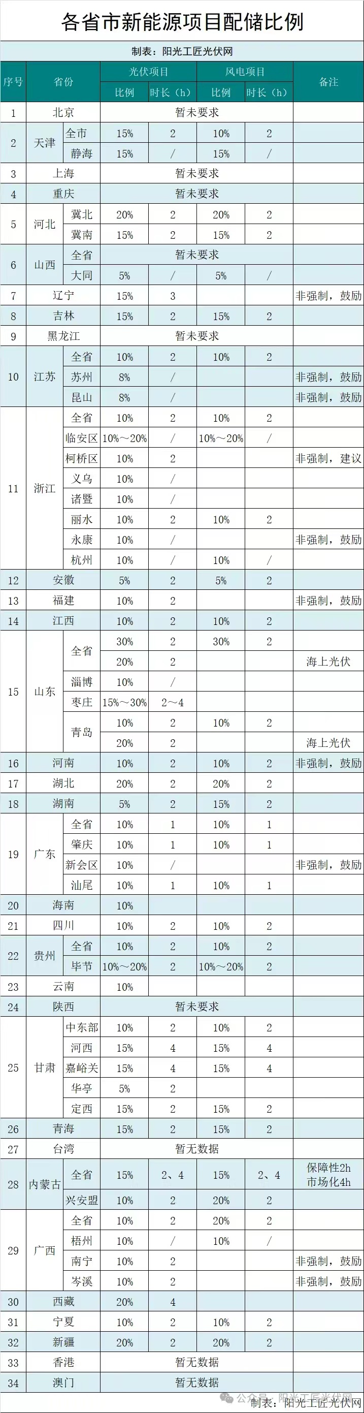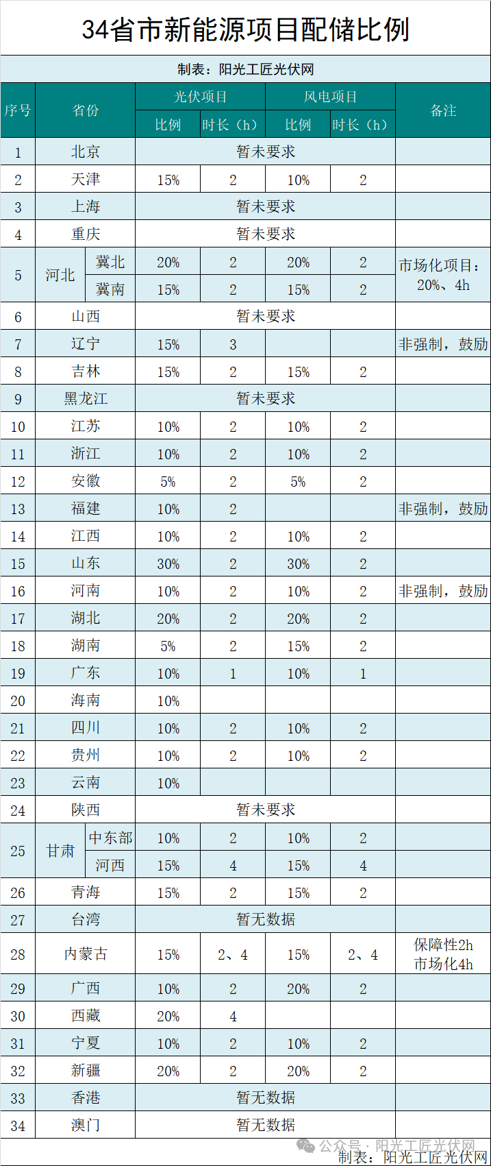 风光无限储九州!全国34 省市风电、光伏配储要求汇总