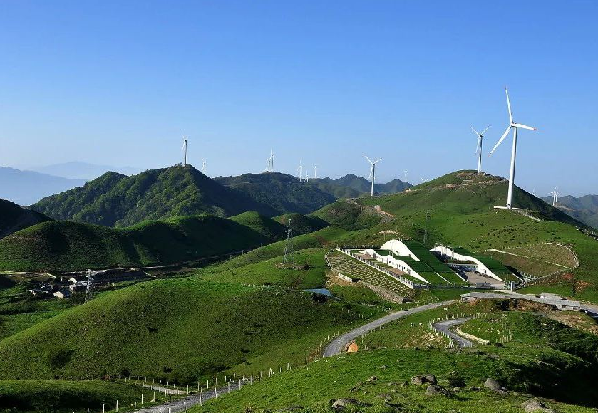 第三是生态效益好。该项目制定了高标准、切实可行的建设方案,环保投入超过5000万元,植被恢复率达到99%以上,整个风电场青山绿水,环境优美,工业风景和自然景观融为一体,成为湖南风电的一道亮丽风景线。