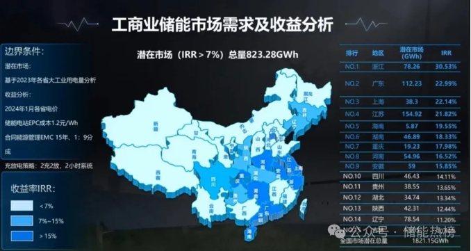 日前,业内知名一线实战大咖奇点能源李智杰在直播中透露一个堪称激进的数据:国内高耗能行业应用储能潜在市场规模就能达到500+GWh,预测未来工商业储能潜在市场(IRR>7%)总量约823GWh。