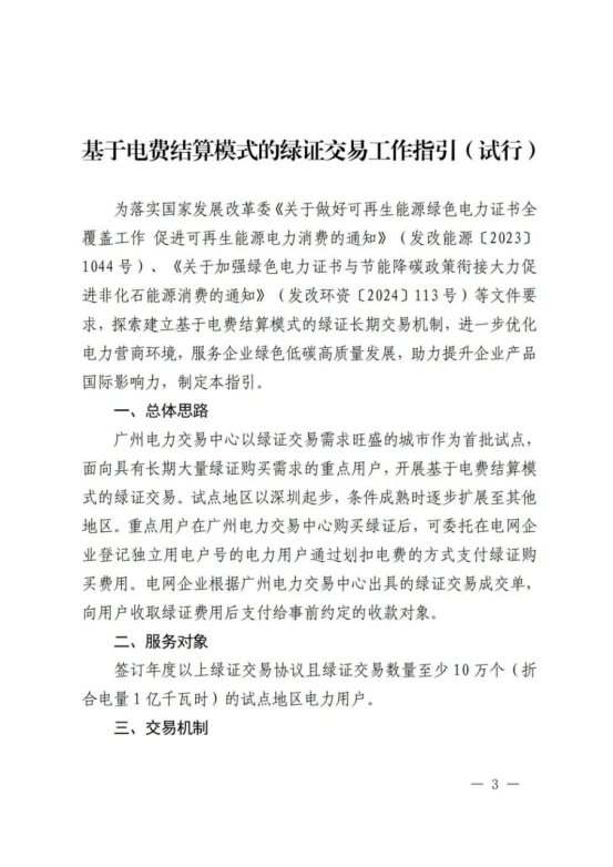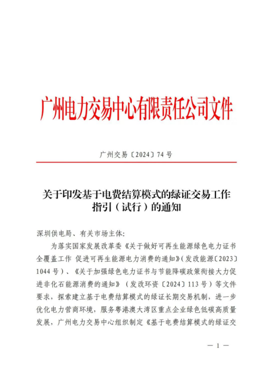 近日,广州电力交易中心发布关于印发基于电费结算模式的绿证交易试点工作指引(试行)的通知。