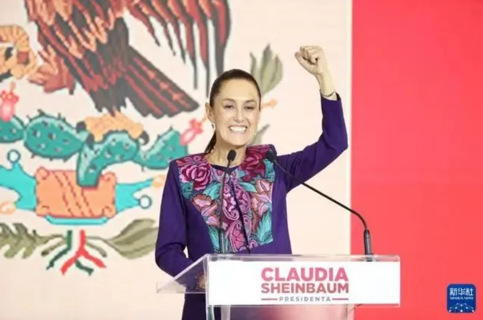 墨西哥执政党国家复兴运动党所在竞选联盟总统候选人克劳迪娅·辛鲍姆6月3日在首都墨西哥城宣布赢得总统选举胜利,将成为墨西哥历史上首位女总统。她将于10月1日开始执政。