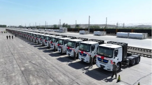 5月24日,万物友好-哈密国投首批100辆醇氢重卡交付仪式在新疆哈密隆重举行。交付的远程醇氢重卡将显著增强哈密国投的新能源运力水平,并高效赋能疆煤外运,助力新疆干线物流构筑更完善的醇氢生态,进一步促进当地经济高质量发展。