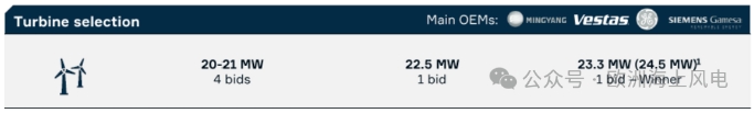 第二,评分标准中,风机数量越少,得分越高,投标人都倾向于采用20MW以上机型,超过了所有(欧洲)市场上已发布的机型容量,投标人不得不转而采用非欧洲市场的机型,这对欧洲的能源安全造成了威胁;(WindEurope对中国整机的敌意好像是刻在骨子里的——小编注)