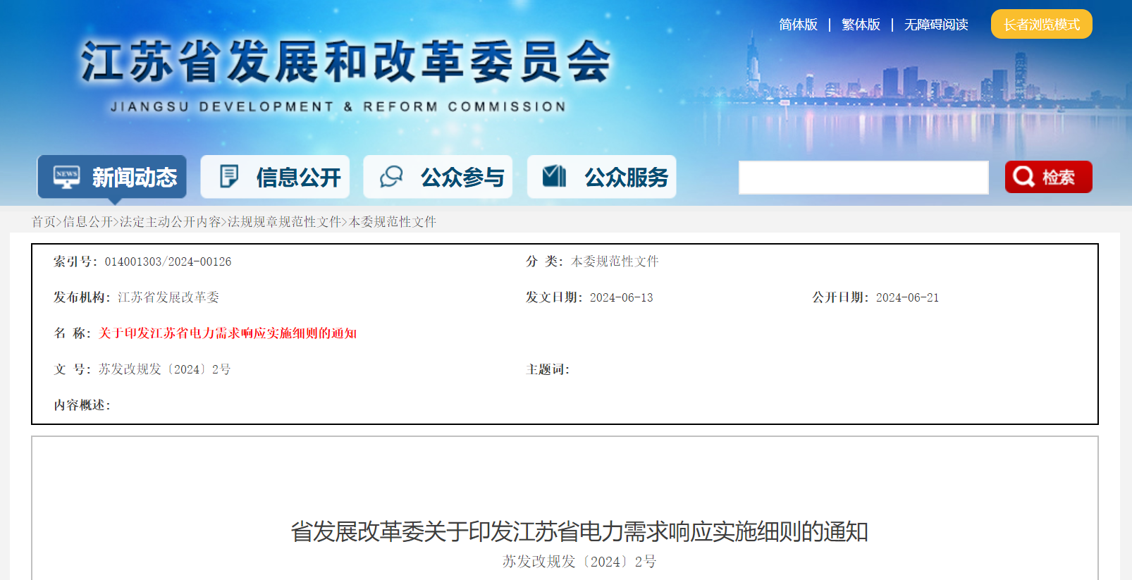 江苏调整需求响应补贴:度电3元/kWh+容量10元/kW!