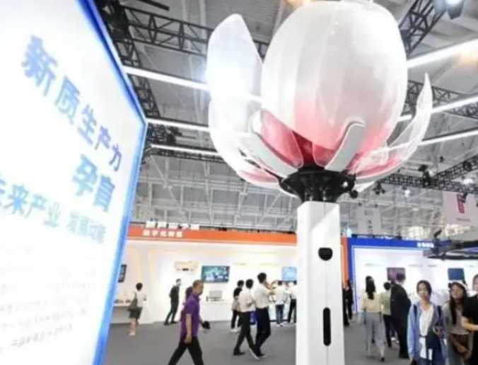 当参观者步入天津展区时,他们的目光不约而同被一款由天津云圣智能科技有限责任公司展出的独特装置——“莲花”所吸引。这朵“莲花”不仅外形美观,其内部隐藏着一架无人机。据该公司副总裁马辉介绍,这款名为“宝莲灯”的装置实际上是一个全自动机场。工作人员在虎视四维全息管控平台下达任务后,全自动机场可以自主为无人机更换电池和传感器,无人机从机场起飞执行巡检作业,可自动产出巡检报告,大大提高了工作效率和准确性。这款全自动机场的设计非常紧凑,占地仅 0.25平方米,机场本体重量 90公斤,仅需 52秒就可实现无人机电池与吊舱的全自动更换,目前,已广泛应用于电力、新能源、智慧城市、消防应急、智慧文旅等行业。