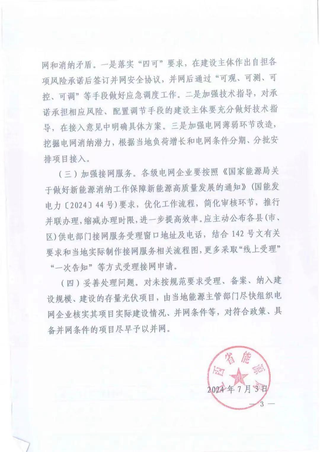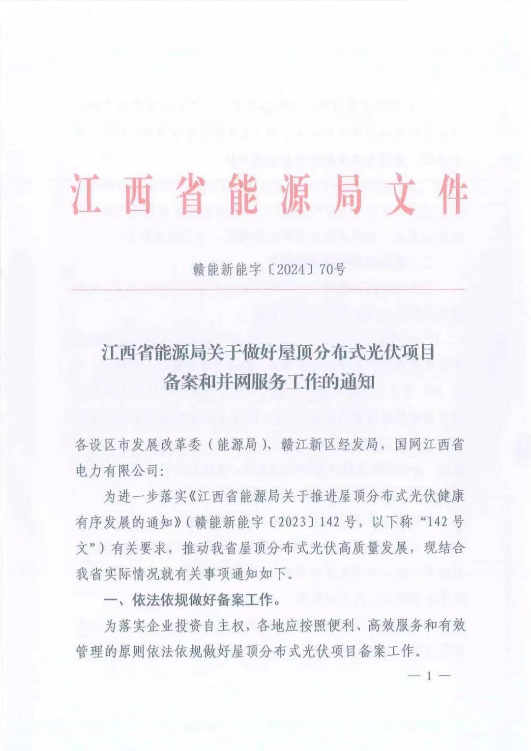 2024年7月3日,为进一步落实《江西省能源局关于推进屋顶分布式光伏健康有序发展的通知》(赣能新能字〔2023〕142号,以下称“142号文”)有关要求,推动该省屋顶分布式光伏高质量发展,江西省能源局下发《关于做好屋顶分布式光伏项目备案和并网服务工作的通知》,针对目前分布式市场存在的停止备案、并网周期长等问题做进一步说明!