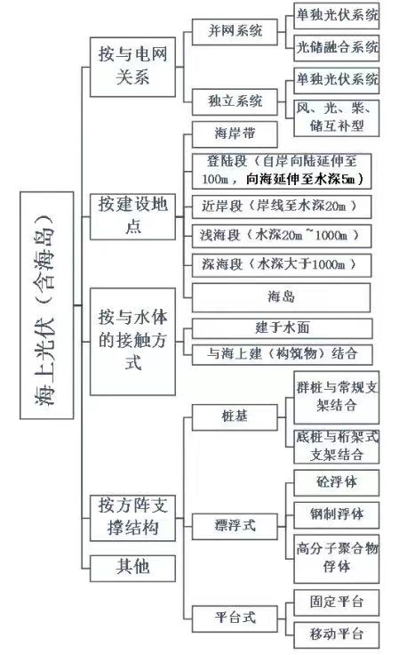 根据显在及潜在应用场景和系统形式,图1-1给出了海上光伏(含海岛)应用场景和系统形式分类(示例)。