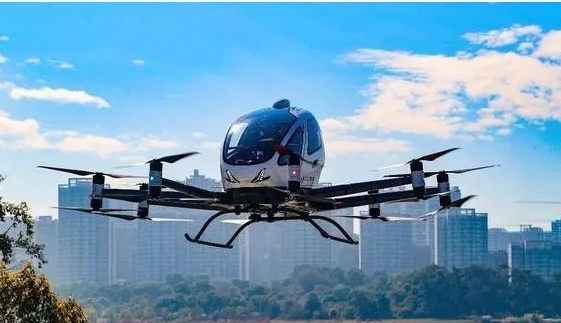 蔚蓝的天空,未来的城市,低空经济的“双翼”正掠过长空。