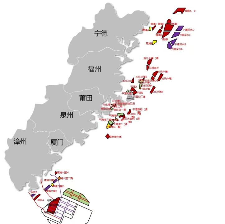 2021年3月17日(神速),福建省发展和改革委员会形成了《福建省近海海上风电场工程规划报告(送审稿)(2021年修编)》。该报告指出截至2020年底,福建省已核准的海上风电项目有15个,总装机容量为3.79GW,已竞配的海上风电项目为1.4GW,具备开发条件的场址容量为1.65GW,总计6.84GW,占现有规划场址容量的51%。其余规划场址因“双十”、海事通航、生态红线、军事因素等影响,不具备开发条件。