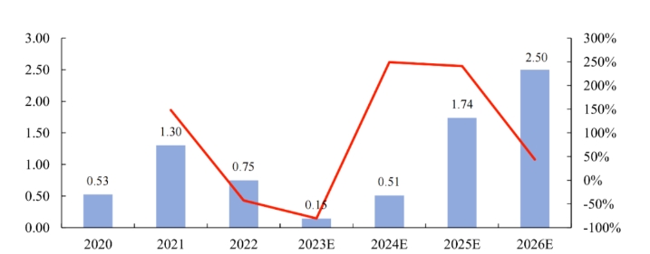 2021-2025年福建海风累计新增装机预计为4.45GW来源:CWEA