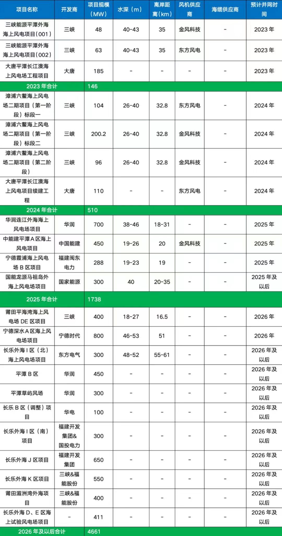 可以看出,三峡新能源是福建海上风电的领军开发商,目前掌握超过三分之一的福建海上规划项目。