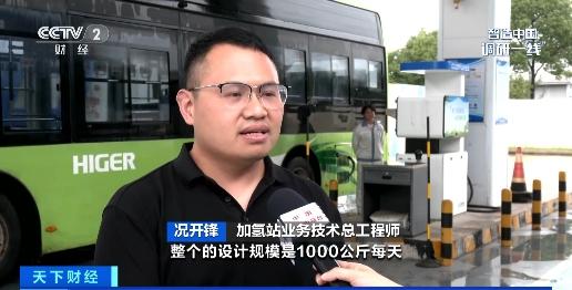 加氢站业务技术总工程师 况开锋:整个加氢设备的设计规模是1000公斤每天,大概可以服务物流车和大巴车50辆到80辆,每辆车大概的加注量是20公斤一辆,补能10分钟到15分钟就可以实现300公里到500公里的行驶里程。