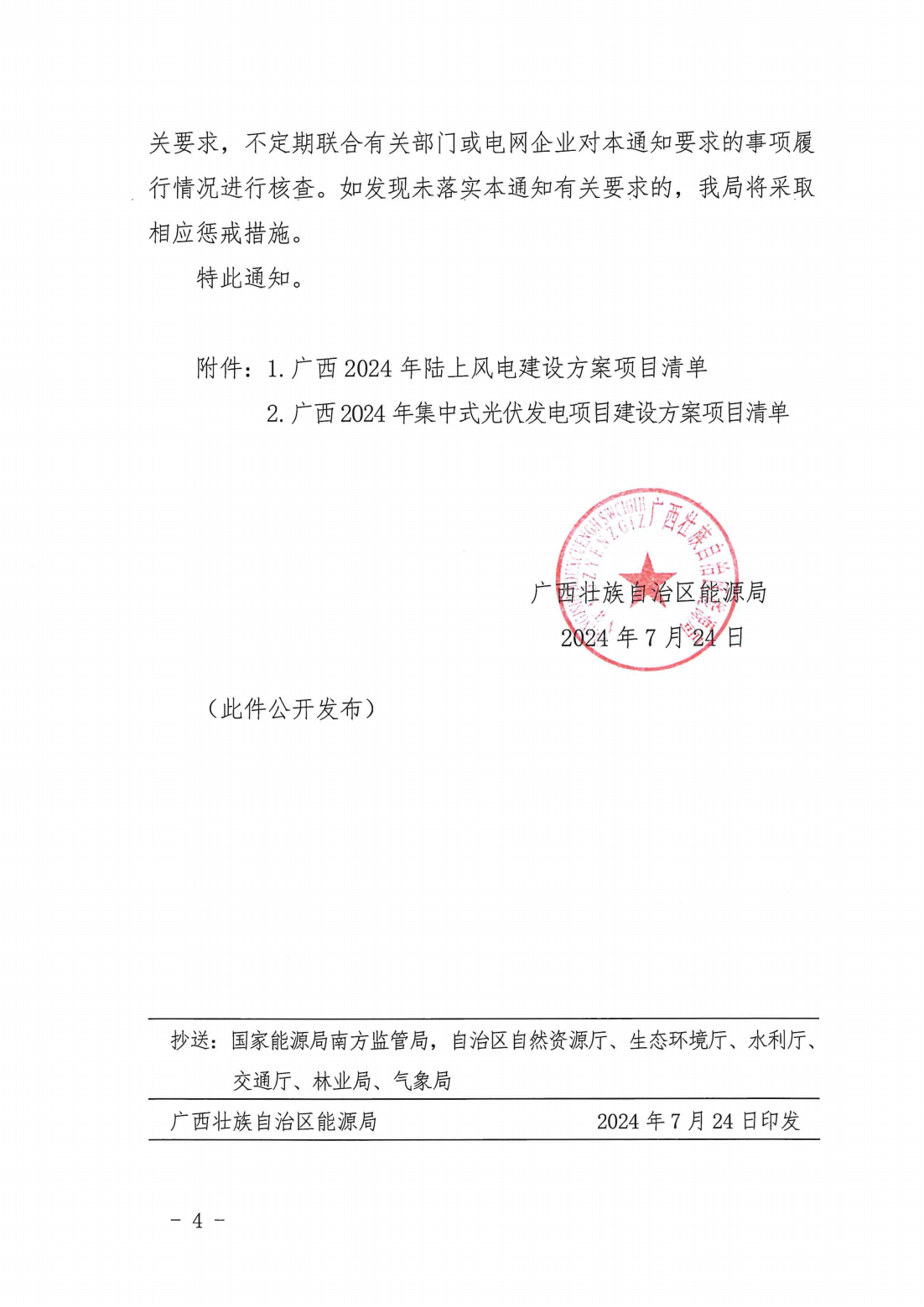 7月24日,广西能源局印发《关于2024年度陆上风电、集中式光伏发电项目建设方案的通知》(简称“通知”)。