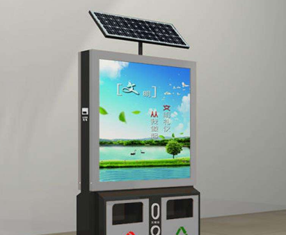 新型太阳能环保垃圾箱兼具灯光照明和垃圾分类收集功能。白天位于箱体顶端的太阳能光伏板吸取太阳能量,晚上利用太阳能发电,箱体通体明亮,点亮城市夜景。