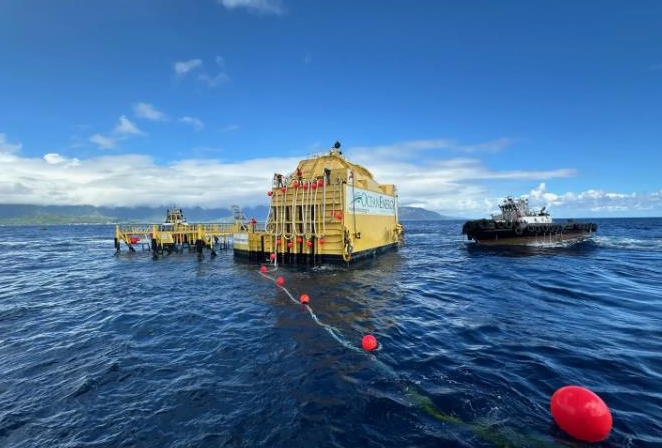 海洋能源公司已将其 826 吨重的波浪能转换浮标 OE-35 部署在瓦胡岛海岸外的美国海军波浪能试验场,然后将其接入夏威夷电网。OE-35 尺寸为 125 x 59 英尺(38 x 18 米),吃水为 31 英尺(9 米),在欧胡岛向风一侧的卡内奥赫海湾已经是一道熟悉的风景