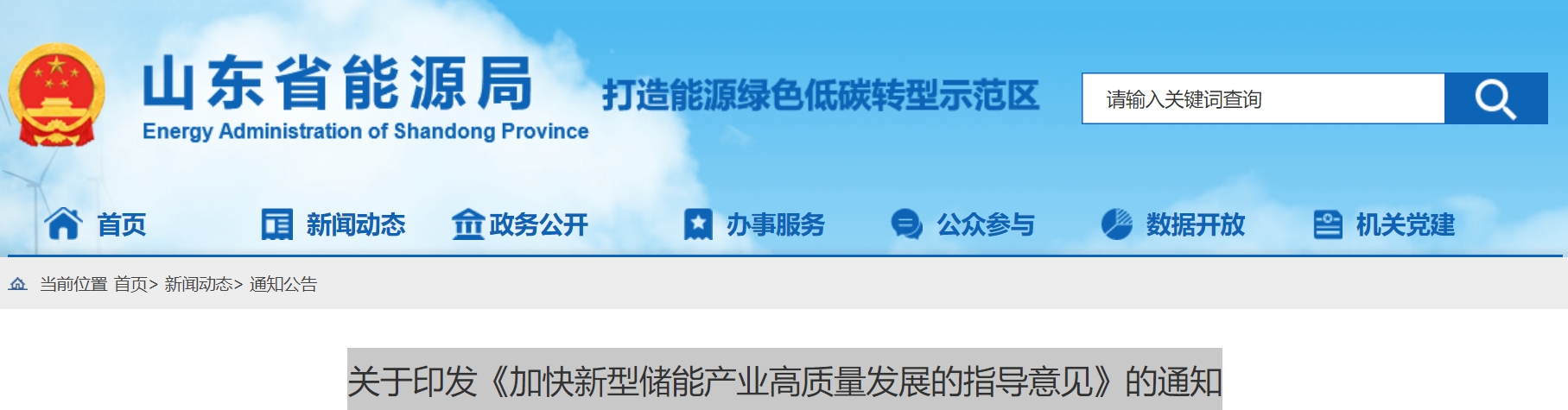 为推动新型储能产业高质量发展,山东省能源局等联合印发《关于加快新型储能产业高质量发展的指导意见》