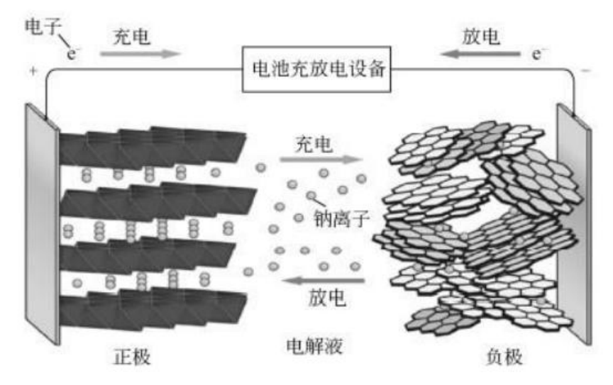 钠离子电池的结构和工作原理与锂离子电池相似,也是由正极、负极、隔膜、电解液和集流体组成。