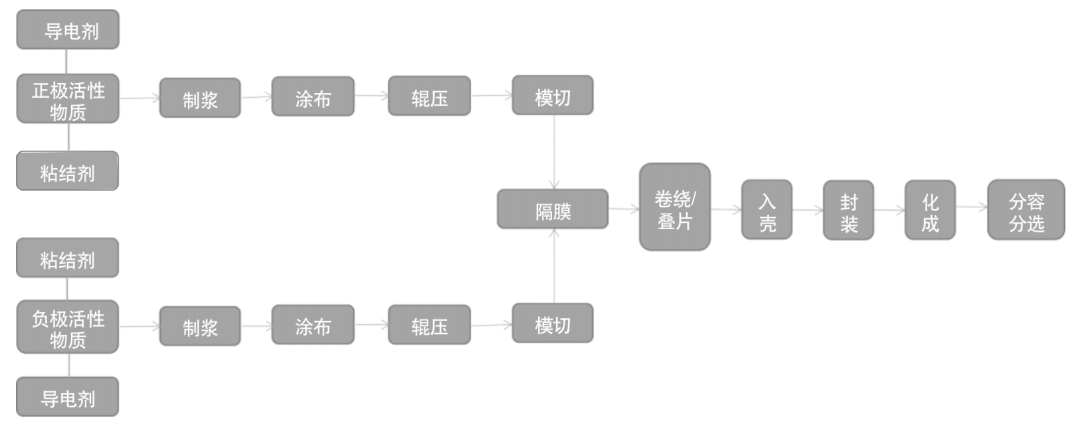 上游:原材料,包括正极材料、负极材料、电解液、隔膜、集流体等