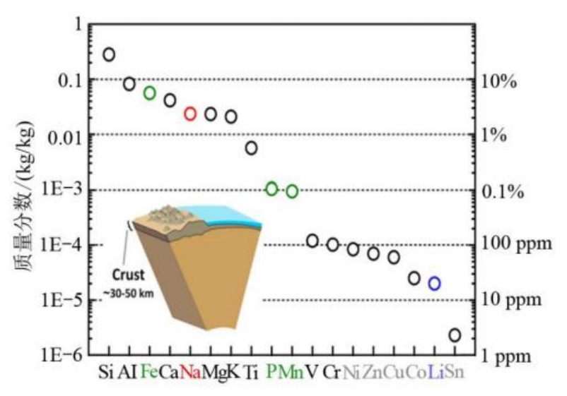 • 钠资源丰富:钠元素在地壳中丰度为2.3%,位居所有元素第六位,显著高于锂元素的0.0017%。陈立泉院士表示目前全球探明的可供开采的锂资源储量仅能满足14.8亿辆电动汽车,随着全球电动化加快,锂资源短缺压力进一步体现。