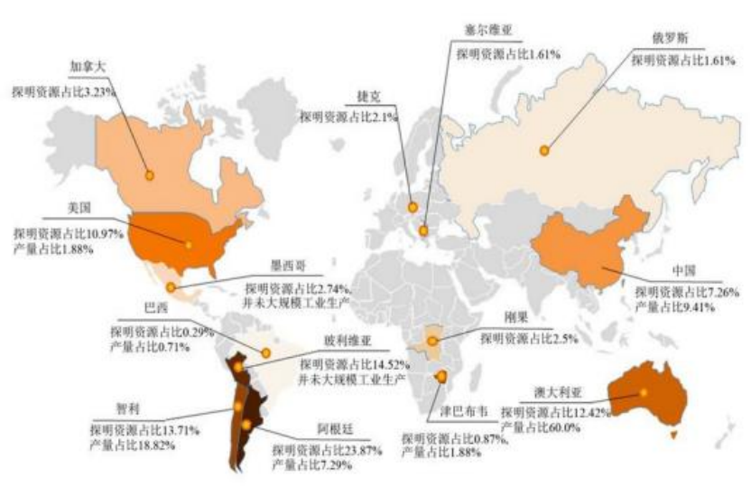 • 钠资源分布更均匀:据美国地质调查局2019年报告显示,南美洲国家阿根廷、智利、玻利维亚三国锂资源储量在全球中占比达到52.10%,中国锂资源储量占比仅为7.26%,资源分布极度不均匀。中国所需60%以上锂原料均需要进口,对外依存度高。钠元素以盐的形式广泛存于陆地与海洋中,获取便捷度高。