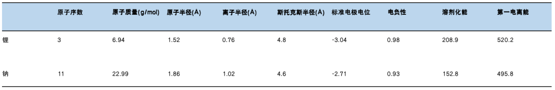 • 锂的标准电极电位更负,在水溶液里表现更为比钠更容易失电子,因而钠离子电池具有更高的稳定性。