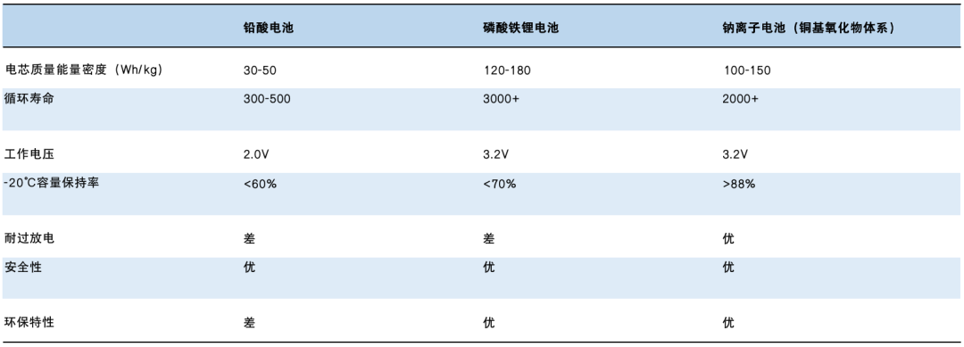• 循环寿命:钠离子电池现在整体循环寿命在2000次左右,比磷酸铁锂电池表现略差,相较于部分用于储能领域的循环寿命超5000次的磷酸铁锂电池而言仍有一定差距。