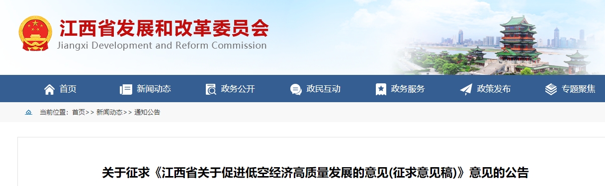 关于征求《江西省关于促进低空经济高质量发展的意见(征求意见稿)》意见的公告