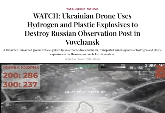 8月2日,乌克兰第166独立机械化旅的士兵,用氢气和塑料组合成的爆炸弹头,摧毁了沃夫昌斯克的一个俄罗斯观察哨。