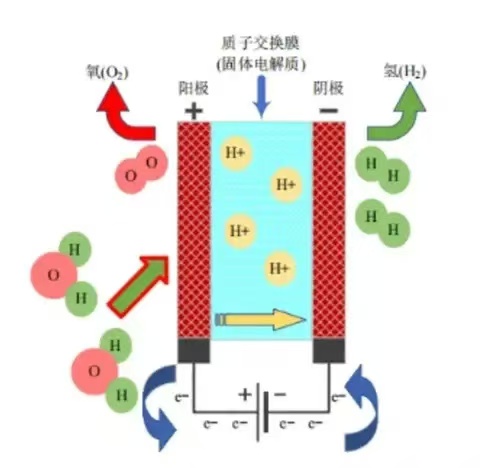 氢燃料电池的原理是将氢气输入燃料电池,氢原子的电子被质子交换膜阻挡,通过外电路从负极传导到正极,成为电能驱动的电机;
