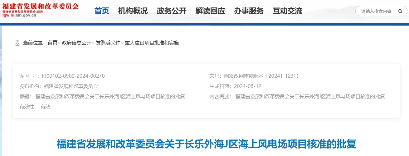 日前,福建省发展和改革委员会发布《关于长乐外海K区海上风电场项目核准的批复》、《关于长乐外海J区海上风电场项目核准的批复》,同意建设这两个海上风电项目。