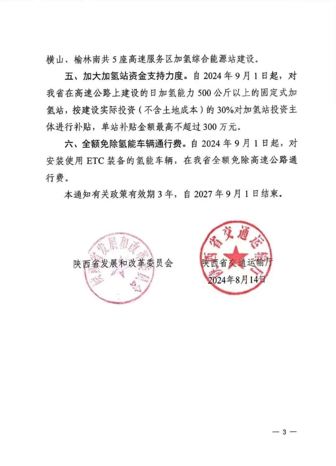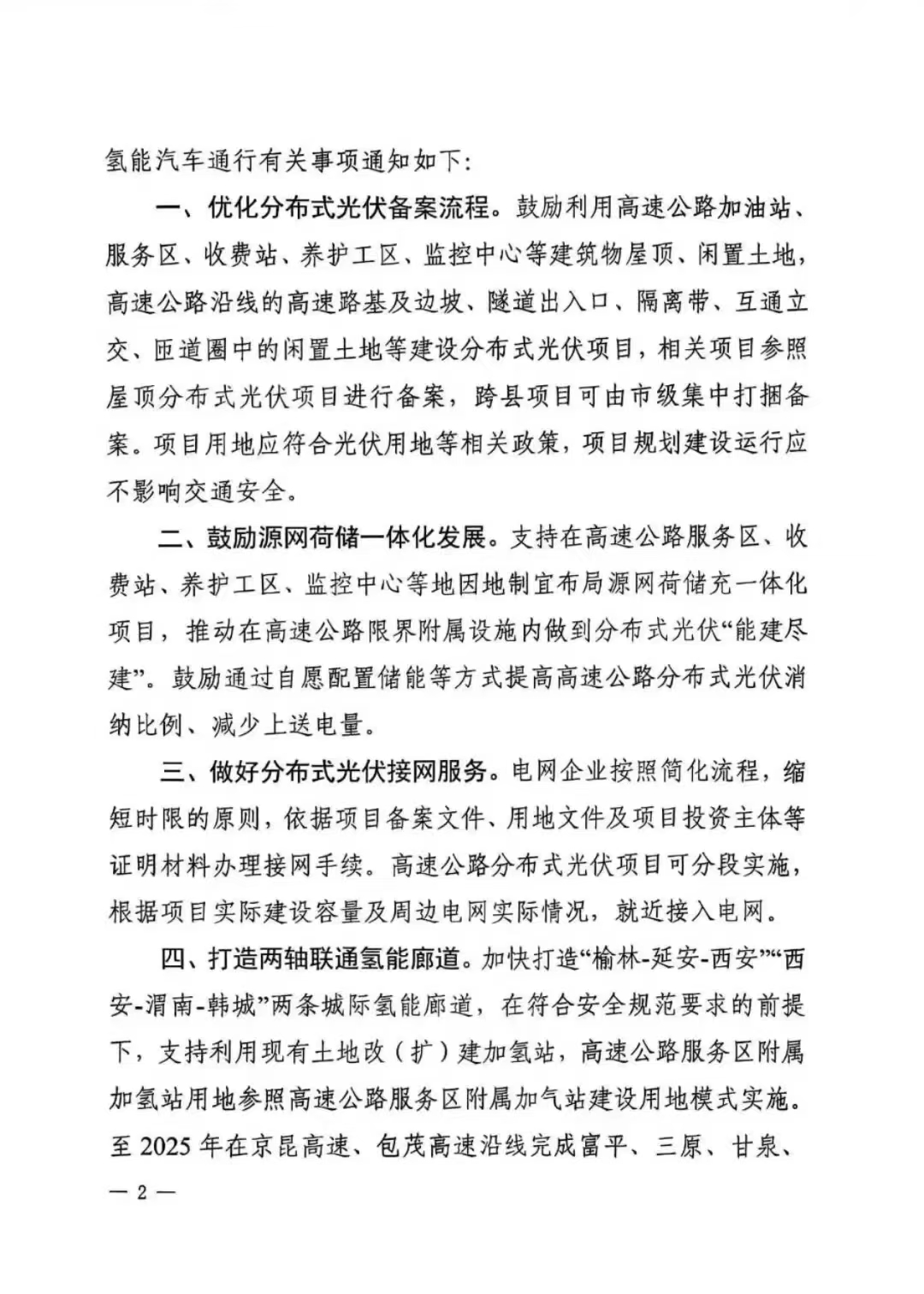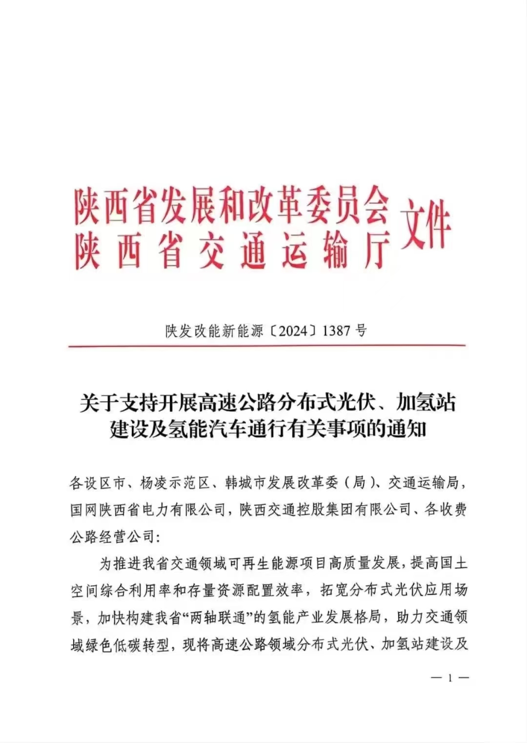 8月14日,陕西省发展和改革委员会、陕西省交通运输厅发布了《关于支持开展高速公路分布式光伏、加氢站建设及氢能汽车通行有关事项的通知》。其中表示,优化分布式光伏备案流程。