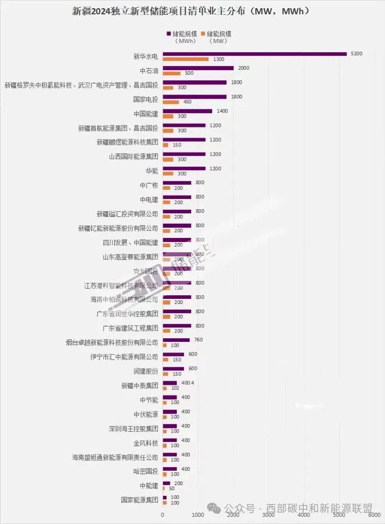 从项目业主上看,新华水电、中石油、新疆格罗夫中极氢能科技&武汉广电资产管理&昌吉国投领衔,项目规模分别为1.3GW/5.2GWh、0.5GW/2GWh、0.3GW/1.8GWh。