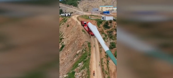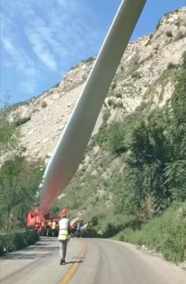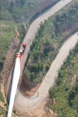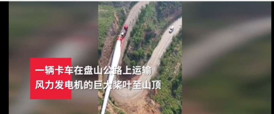 火了!中国司机逆天操作——载着风机浆叶行驶20多个山路弯道