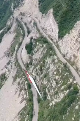 背着巨大桨叶的卡车,在山路中需经历20多个弯道。