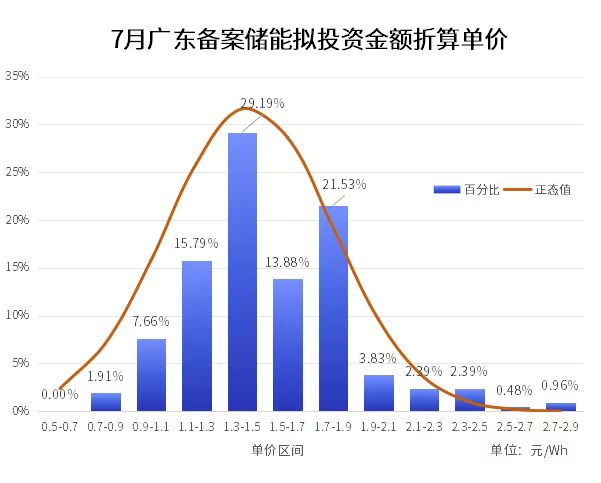 从投资成本单价来看,如下图所示,广东储能项目按投资折算单价多数处在1.1元/Wh~2元/Wh的范围内,单价在1.5元/Wh附近的占比最多。