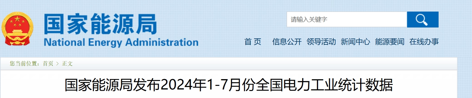 8月23日,国家能源局发布1-7月份全国电力工业统计数据。