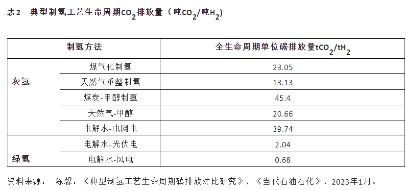 化石燃料制氢会排放大量CO2。如表2所示,不同制氢技术路线的全生命周期碳排放差别很大。目前氢产量中,煤炭制氢占64%,天然气制氢占14%。因此,三年增加的1791万吨氢气中,有1146万吨是煤炭制取的,250万吨是天然气制取的。这些增加的氢气全生命周期CO2排放总计达2.96亿吨。