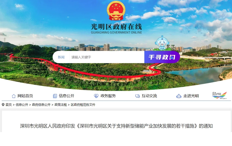 深圳市光明区人民政府印发《深圳市光明区关于支持新型储能产业加快发展的若干措施》的通知.pdf