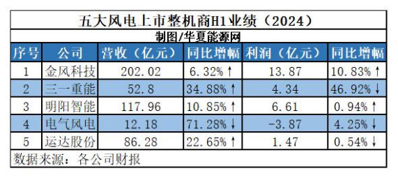 风清月明!五大风电整机商半年业绩PK:金风最赚钱,三一增收最多
