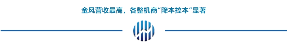 五大上市整机商中,金风科技的业绩最为亮眼,营收和利润均最高。