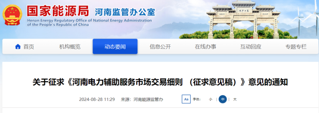 8月28日,河南能源监管办发布关于征求《河南电力辅助服务市场交易细则(征求意见稿)》(以下简称《细则》)意见的通知。