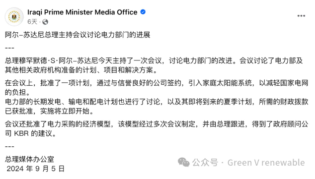 据伊拉克总理媒体办公室最新消息,伊拉克总理穆罕默德·S·阿尔-苏达尼在近期主持的一次电力部门会议上,宣布了一项振奋人心的计划——通过与信誉卓著的企业合作,引入家庭太阳能系统,为伊拉克的能源结构注入绿色新动力!