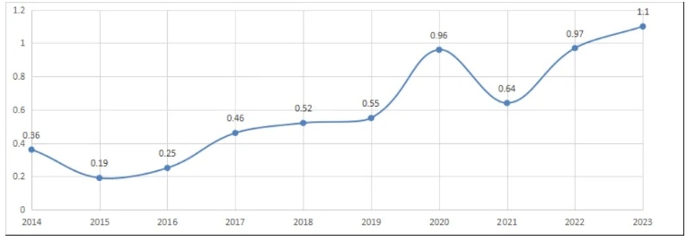 图2 2014—2023年能源消费弹性系数