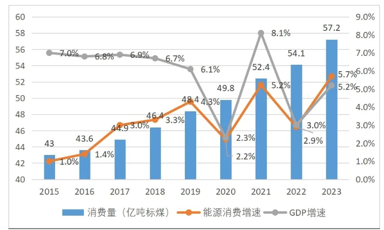 但实际结果并不理想,《“十四五”现代能源体系规划》提出:“十四五”期间,单位 GDP能耗累计下降13.5%,单位GDP二氧化碳排放累计下降 18%。而“新冠”疫情以来,宏观经济发展遭遇非常复杂的内外部环境,对大基建、高耗能和制造业依赖仍很严重,产业结构优化步伐放缓,能耗强度降低速度放缓甚至有逆转趋势,详见图1。