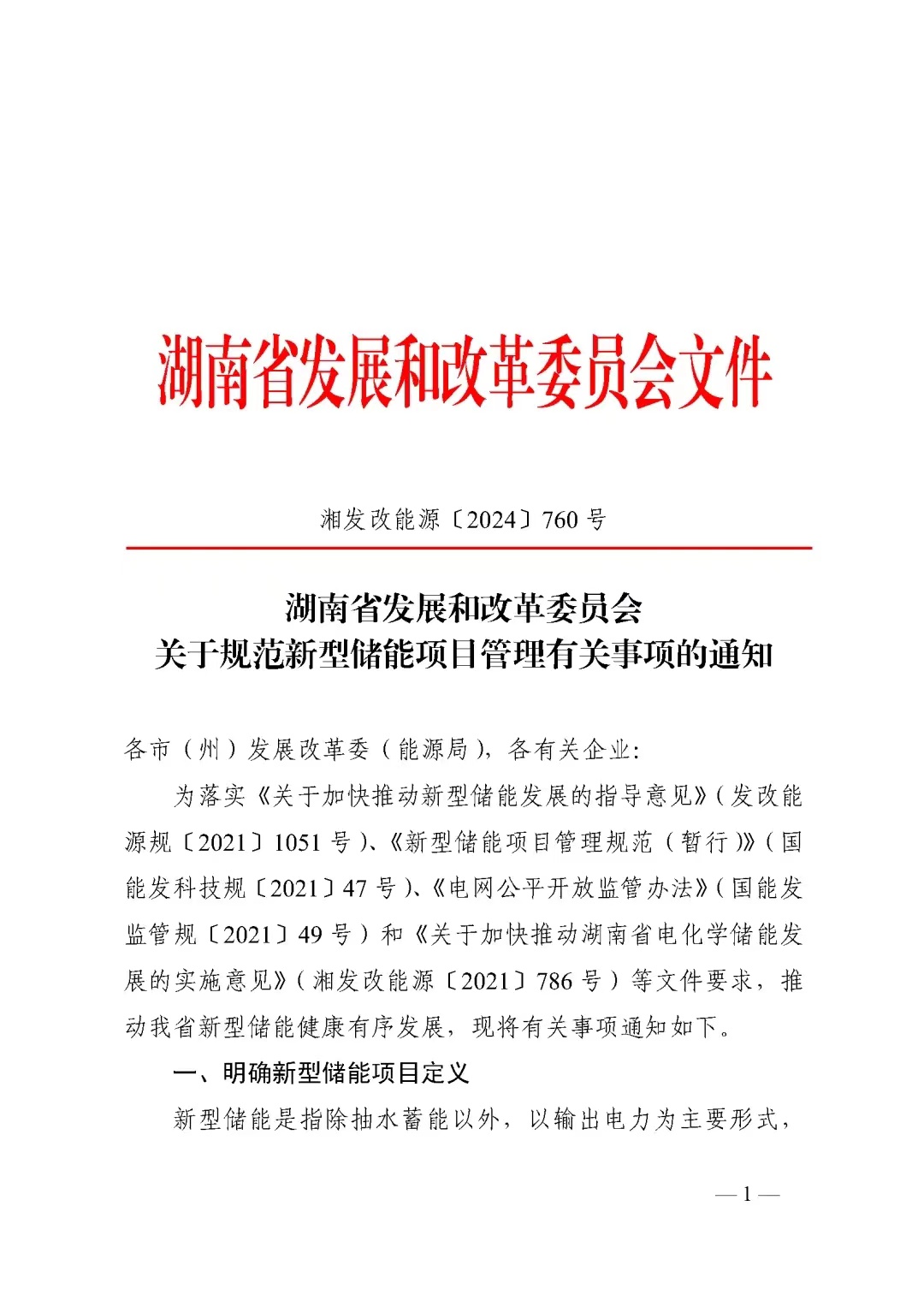 湖南:全省以发展电网侧及用户侧新型储能为主!
