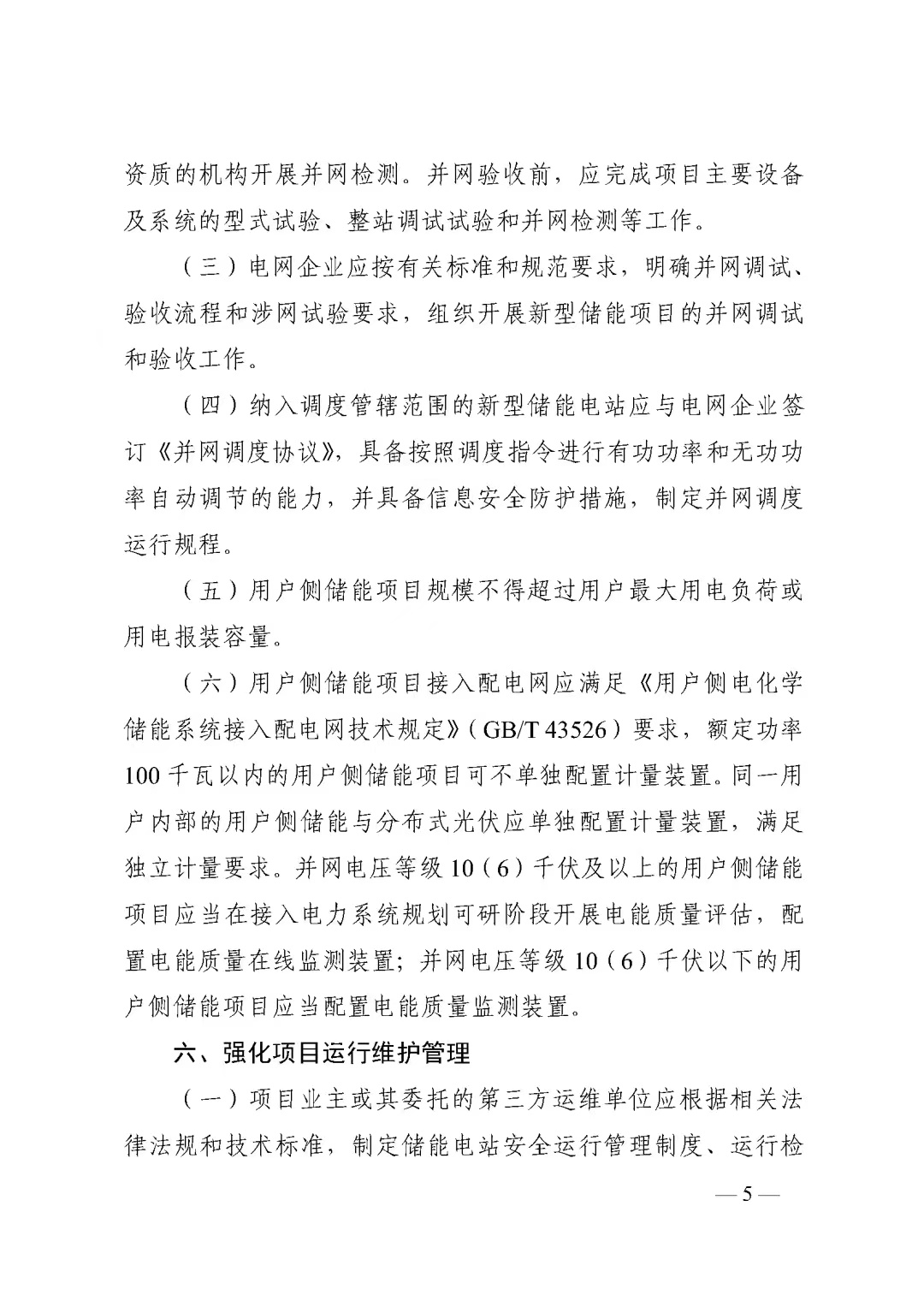 文件指出,用户侧储能项目规模不得超过用户最大用电负荷或用电报装容量,用户侧储能项目原则上不得使用动力梯次利用电池;鼓励并网电压等级380伏及以下的新型储能项目优先考虑以聚合模式参与市场化交易。