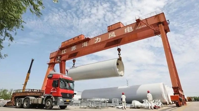 风电塔筒(塔架)是支撑风电机组的重要结构,主要作用是将风轮、发电机等组件安装在高空,使得风轮能够得到更强的风力。相对于其它风电机组零部件,传统风电塔筒制造技术难度不高,且受制于运输半径,行业格局较为分散。国内专业生产风电塔筒的龙头企业包括大金重工、天顺风能、泰胜风能、海力风电等。2022年,大金重工、天顺风能份额分别为13.73%、13.18%。江苏省内制造风电塔筒的企业主要有射阳天顺风电设备有限公司、天顺海工装备(江苏)有限公司、江苏长风海洋装备制造有限公司、江苏海力风电设备股份科技有限公司(简称“海力风电”)、江苏海力海上风电装备制造有限公司、南通泰胜蓝岛海洋工程有限公司、中船澄西扬州船舶有限公司等。其中最具代表性的企业是天顺风能和海力风电,总部均在江苏。天顺风能是全球最具规模的风力发电塔筒专业制造企业之一,仅江苏省内子公司就有6家。