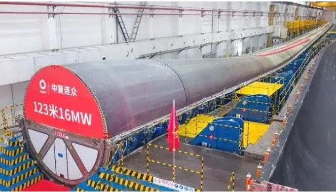 风电叶片的作用是将风能转化为机械能,进而驱动发电机发电,其设计、制造及运行状态的好坏直接影响到风机的性能和发电效率。叶片国产化率较高,而且集中度也较高。2021年全国叶片出货约1.7万套,最大的5家企业所占市场份额(CR5)超64%。目前,我国生产海上风电叶片的企业主要有中材叶片、时代新材、天顺风能、上玻院、艾郎科技、重通成飞、洛阳双瑞、正威新材、三一重能、东方电气、明阳智能、金风科技、远景能源、联合动力等。此外,迪皮埃、艾尔姆风能等外资企业在中国也建有生产基地。上述绝大多数企业均在江苏注册公司或并购重组,建立叶片生产基地,例如中材科技(阜宁)风电叶片有限公司、中复连众风电科技有限公司、射阳中车风电叶片工程有限公司、苏州天顺复合材料科技有限公司、上海玻璃钢研究院东台有限公司、南通艾郎风电科技发展有限公司、重通成飞风电设备江苏有限公司、江苏双瑞风电叶片有限公司、江苏九鼎风电复合材料有限公司、金风科技(连云港)有限公司、远景能源(扬州)有限公司、国电联合动力技术(连云港)有限公司、迪皮埃风电叶片大丰有限公司、艾尔姆风能科技(江苏)有限公司等。企业总部位于江苏的叶片知名品牌或企业有中复连众、天顺风能、正威新材等。中复连众是国内最早从事兆瓦级风机叶片开发、设计、制造、检测和服务的企业,形成了兆瓦级风电叶片原材料国产化、碳纤维复合材料大型叶片关键技术等技术成果,拥有国内规模最大的生产基地和规格最齐全的叶型体系,在低风速叶片和海上叶型开发方面走在行业前列,海上风机叶片国内市场占有率第一。江苏风电叶片长度和原材料创新屡创国内纪录,从68.6米…直到123米,从玻璃纤维材料到玻纤碳纤合制材料再到碳纤维材料。目前,射阳中车风电叶片工程有限公司150米级海上风电叶片智造项目正在建设当中。